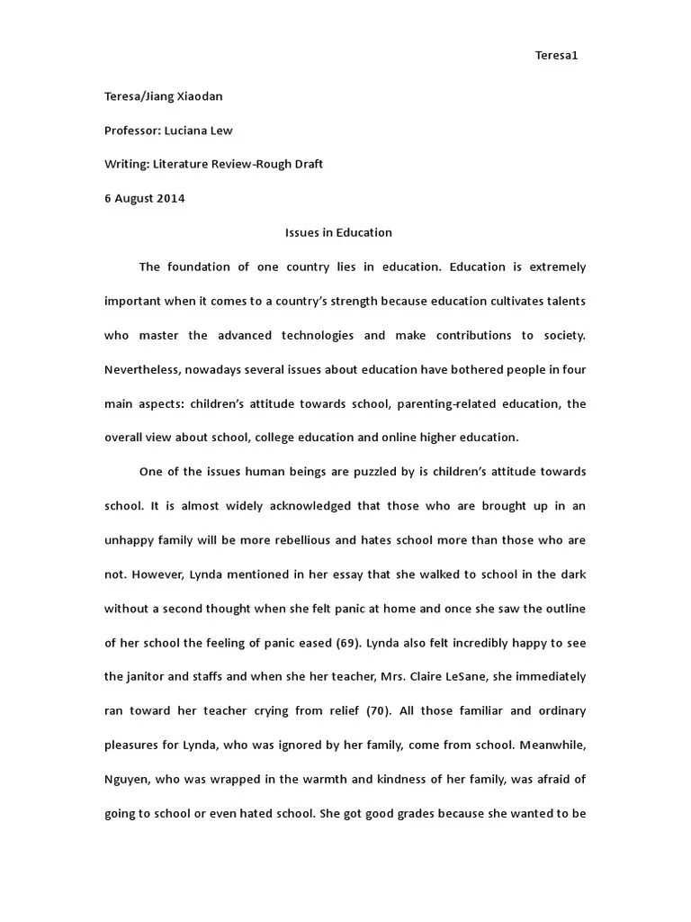 The essay format you use should adhere to will be the citation style preferred by your rough draft example. In the first part of a literature review you typically establish several things.